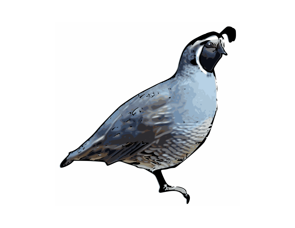 This features a bird, possibly a quail or a pigeon, standing on one leg with its head turned to the side. It appears to be walking across a white background, giving it an air of motion and liveliness. The bird's posture suggests that it is either observing something in its surroundings or simply taking a break from walking. The contrast between the bird's color and the white background creates a striking visual effect, drawing attention to the bird as the main subject of the image.