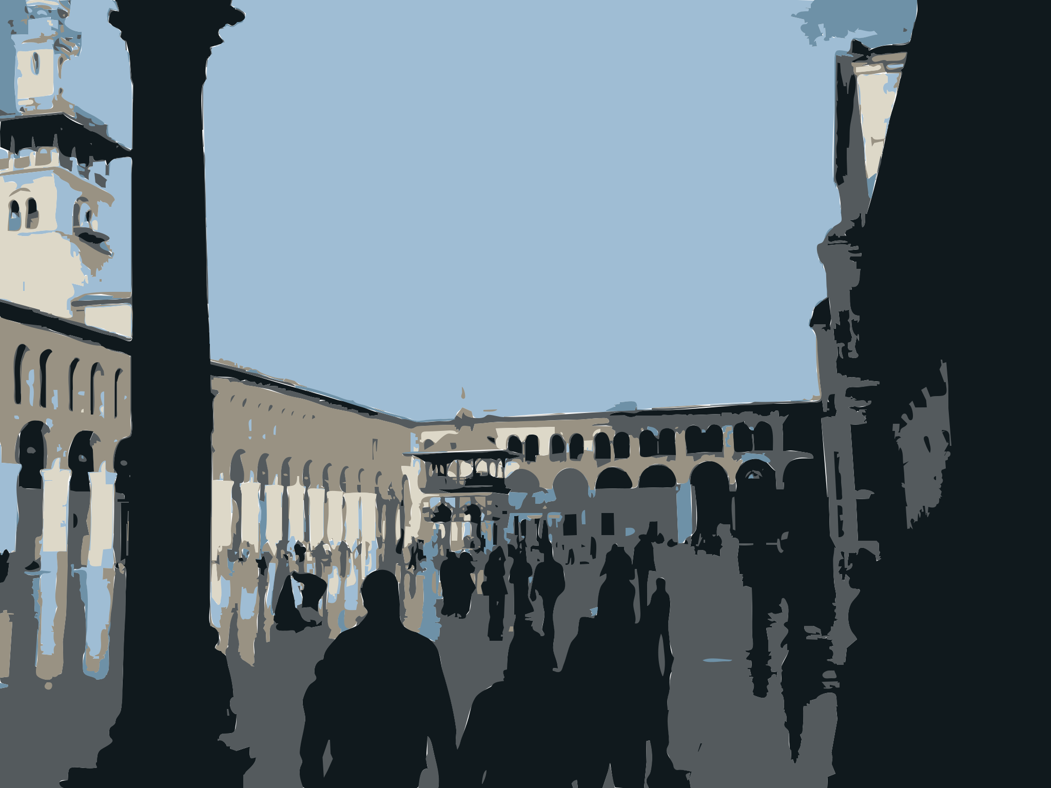 Tags: bassel, basselkhartibil, basselsafadi, damascus, fabricatorz, freebassel, mosque, person, souk, syria, umayyad, vectorized, walking, black and white, people walking, old building, architecture