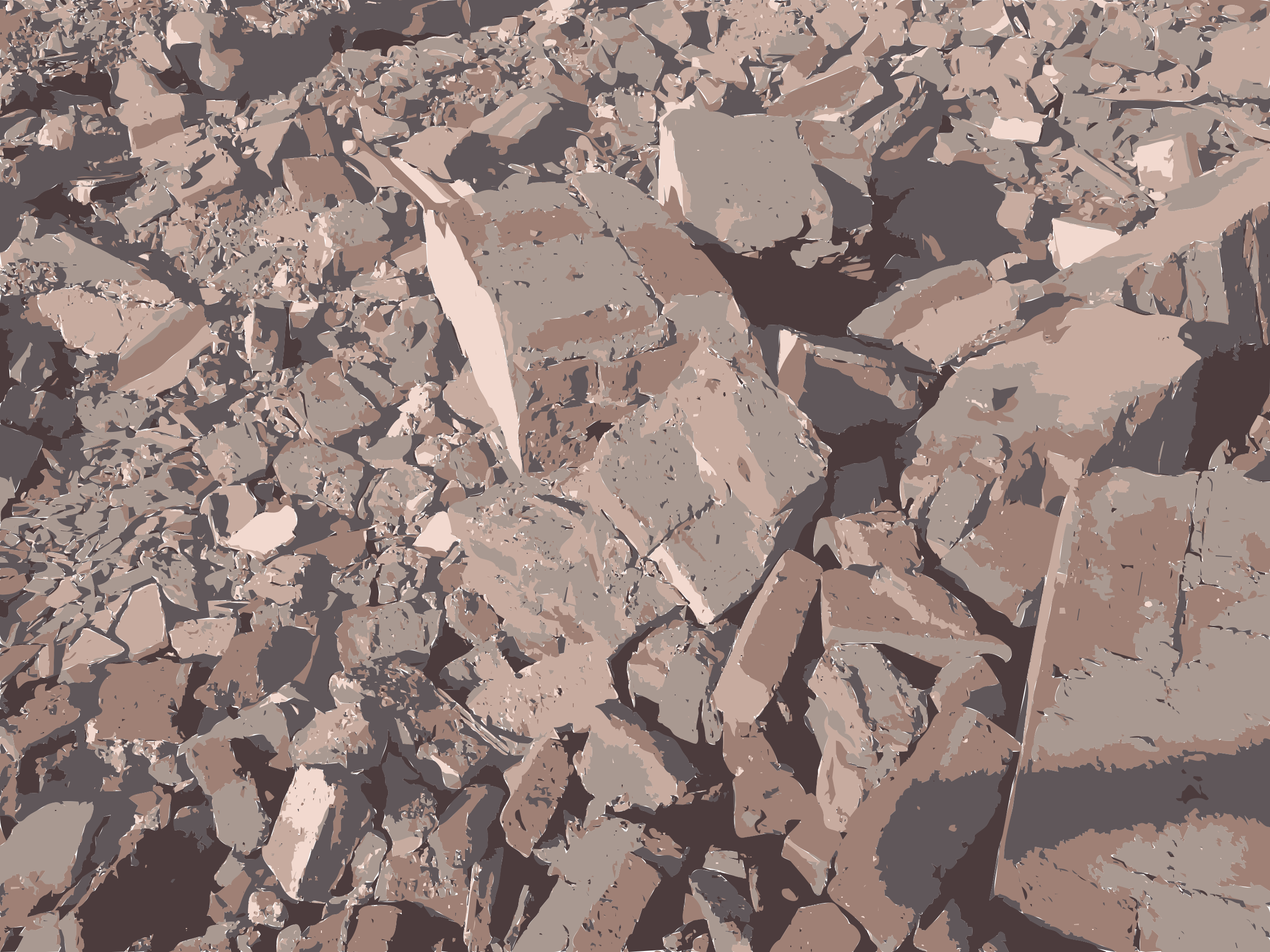 This features a large pile of rocks, possibly broken concrete or rubble. These rocks are scattered throughout the scene and vary in size, with some appearing larger than others. The overall composition of the image gives an impression of disarray and chaos, as if the rocks have been thrown together haphazardly. This could be a representation of a demolished building or a site that has experienced significant damage.