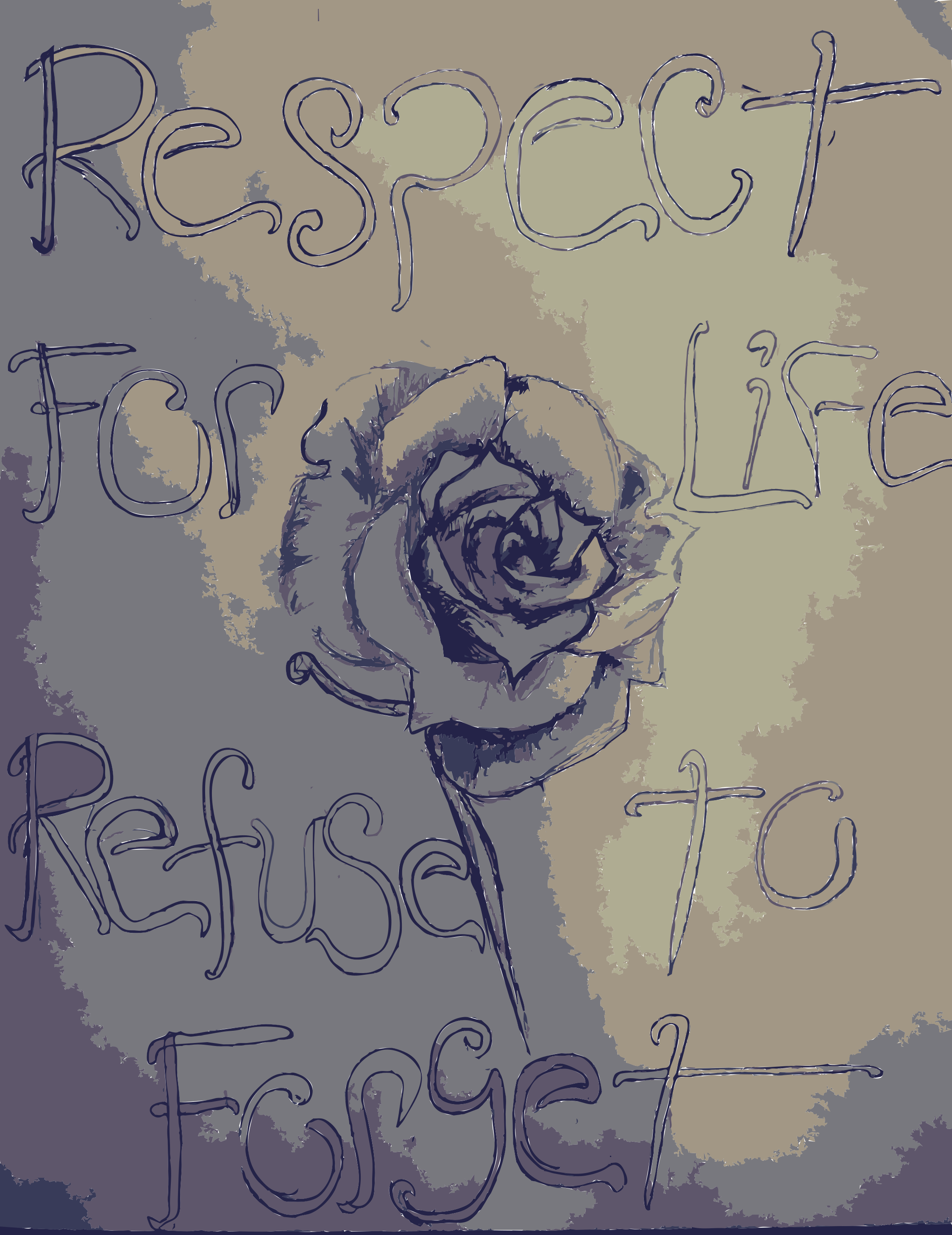 This features a rose with the words "Respect for Life" written around it. The rose is positioned in the center of the image, and the text is arranged in various directions surrounding it. This artistic display could be used to convey a message or simply as an eye-catching design element.