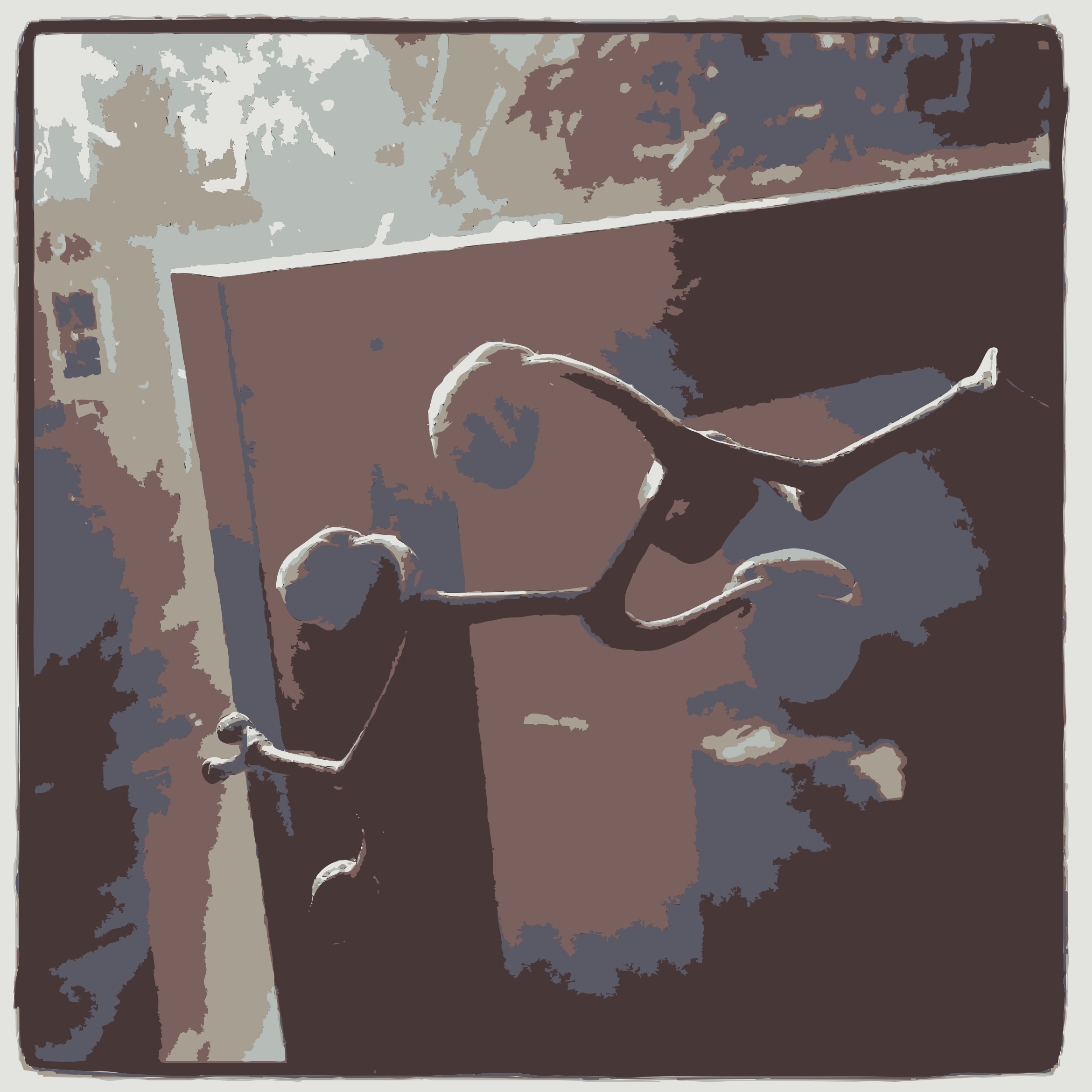 This features a doorway with an interesting decoration. There are three metal sculptures hanging on the wall, each one resembling a person's head. These unique pieces of artwork add character to the space and create a visually engaging scene. The sculptures are positioned at different heights and angles, making them stand out against the doorway. Overall, this image showcases an unconventional yet captivating display in the room.