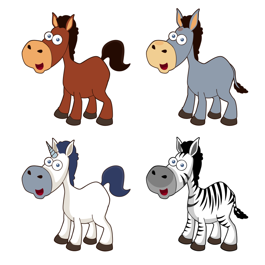 Tags: clipart_issue, cartoon, horse, zebra, donkey, horses cartoon