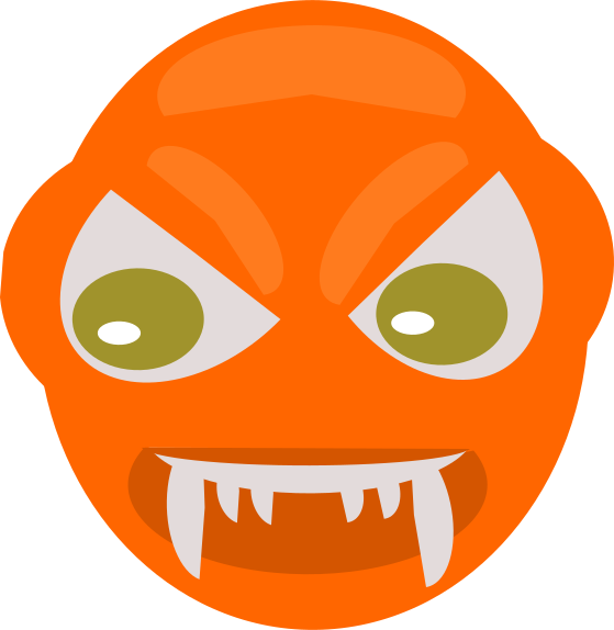 This features a close-up of an orange angry face with sharp teeth, giving it a menacing appearance. The face is the main focus of the image and appears to be the only object in the frame. The color scheme of the face consists of red for the skin tone and green for the eyes, adding a unique touch to its design.