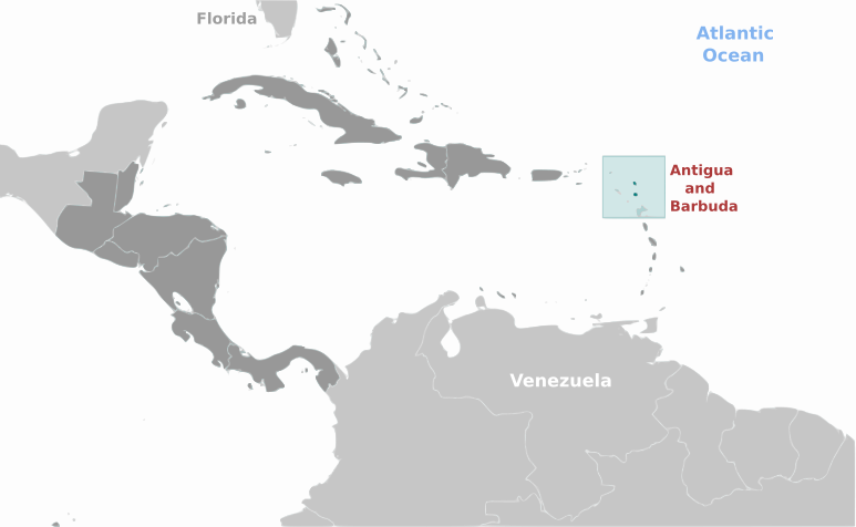 This is a map of the Caribbean region, featuring several countries including Antigua. The map is dark gray in color and has various other maps displayed on it as well. Each country's name can be seen clearly labeled on the map, making it easy to identify the different territories. This detailed map provides an excellent overview of the area, allowing viewers to understand the geographical layout and relationships between these countries.