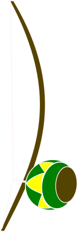 This features a drawing of an arrow with a ball at the end, which is likely part of a bow and arrow set. This drawing appears to be in black and white, giving it a classic or vintage appearance. The arrow itself has a brown color, while the ball is yellow, adding contrasting colors to the image. Overall, this drawing captures an essential element of capoeira culture and tradition.