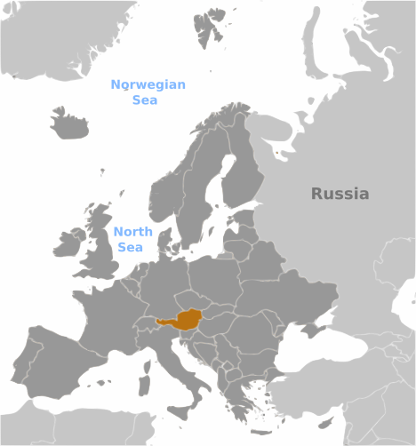 This is a map of Europe, featuring various countries and their borders. In the center of the map, there is an orange dot representing a specific location within Russia. The map also includes labels for different regions such as North Sea, Norway, and Russia. Additionally, there are several other countries marked on the map, including some in Eastern Europe. Overall, it provides a clear visual representation of the geographical layout of these European nations.