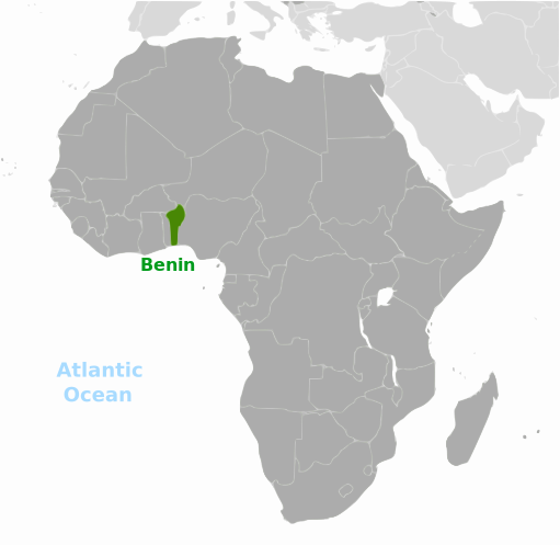 This is a map of Africa, specifically focusing on the country of Benin. It shows the location of Benin in relation to other countries and landmarks within the continent. The map highlights the country's position near the Atlantic Ocean, as well as its borders with neighboring nations such as Nigeria, Togo, Ghana, and Burkina Faso. Additionally, there are several smaller labels on the map that provide more detailed information about specific regions or cities within Benin. Overall, this map offers a clear visual representation of the country's geographical location and its relationship to other countries in Africa.