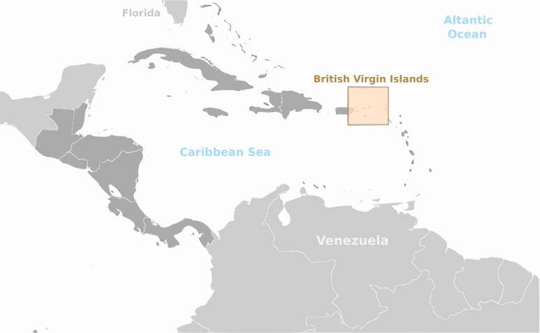 This is a map of the British Virgin Islands, which are located in the Caribbean Sea. The map shows the island's location and its surrounding waters. There are several labels on the map that indicate different locations within the British Virgin Islands. These include the capital city, Tortola, as well as other notable places such as Anegada, Jost Van Dyke, and Virgin Gorda. Additionally, there is a small square in the middle of the map, which could be an indication of a specific point of interest or location within the British Virgin Islands.