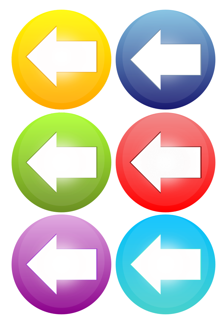 This features a collection of six different colored arrows, each pointing in the same direction. These arrows are arranged in a row and are displayed on a white background. Each arrow is distinctly colored, with one being yellow, another blue, and four more red. The arrangement creates an organized and visually appealing display of these common symbols.