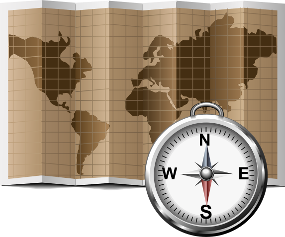 This features a compass placed on top of a map, which is displayed in the form of a book. The compass is round and has a silver appearance, while the map itself is light brown with lines forming squares. The continents are depicted as dark brown, providing contrast to the rest of the map. This unique combination of elements creates an interesting visual representation of geographical information.