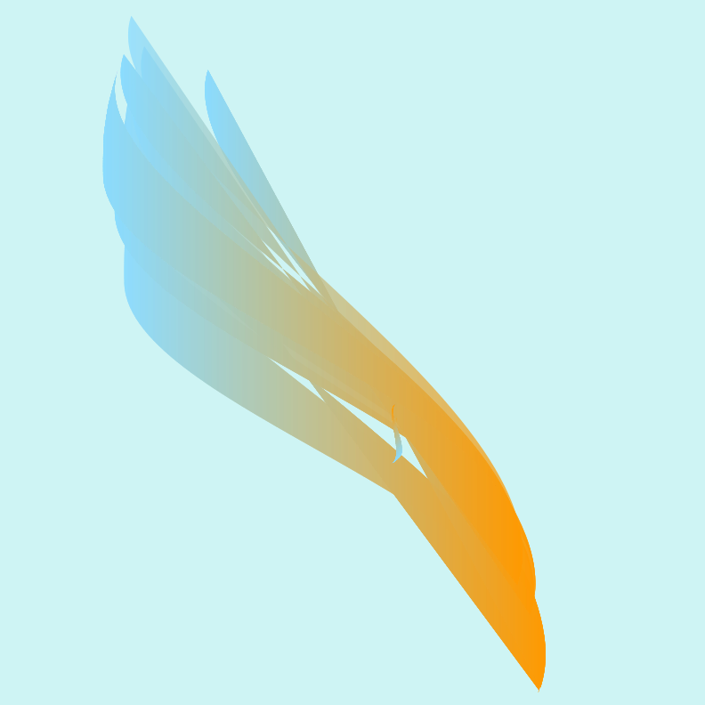 This features a large, colorful bird with an orange and blue wing. It appears to be a stylized or abstract representation of the bird's wing, as it is not a realistic depiction. The colors used in this design are predominantly orange and blue, creating a striking visual effect. The overall composition of the image gives off a sense of movement and energy, making it an interesting and eye-catching piece of artwork.