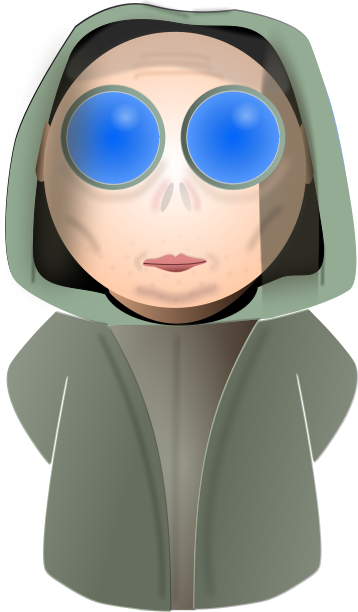 This features a cartoon character wearing a green hooded jacket and sunglasses. The character appears to be standing in front of a brown background, giving the impression that it is an illustration or a comic book-style drawing. The character's outfit includes a coat with a hood, which adds to its mysterious appearance. Additionally, there are two pairs of sunglasses visible on the character, one placed above and another below the eyes, further emphasizing the unique style of this illustration.