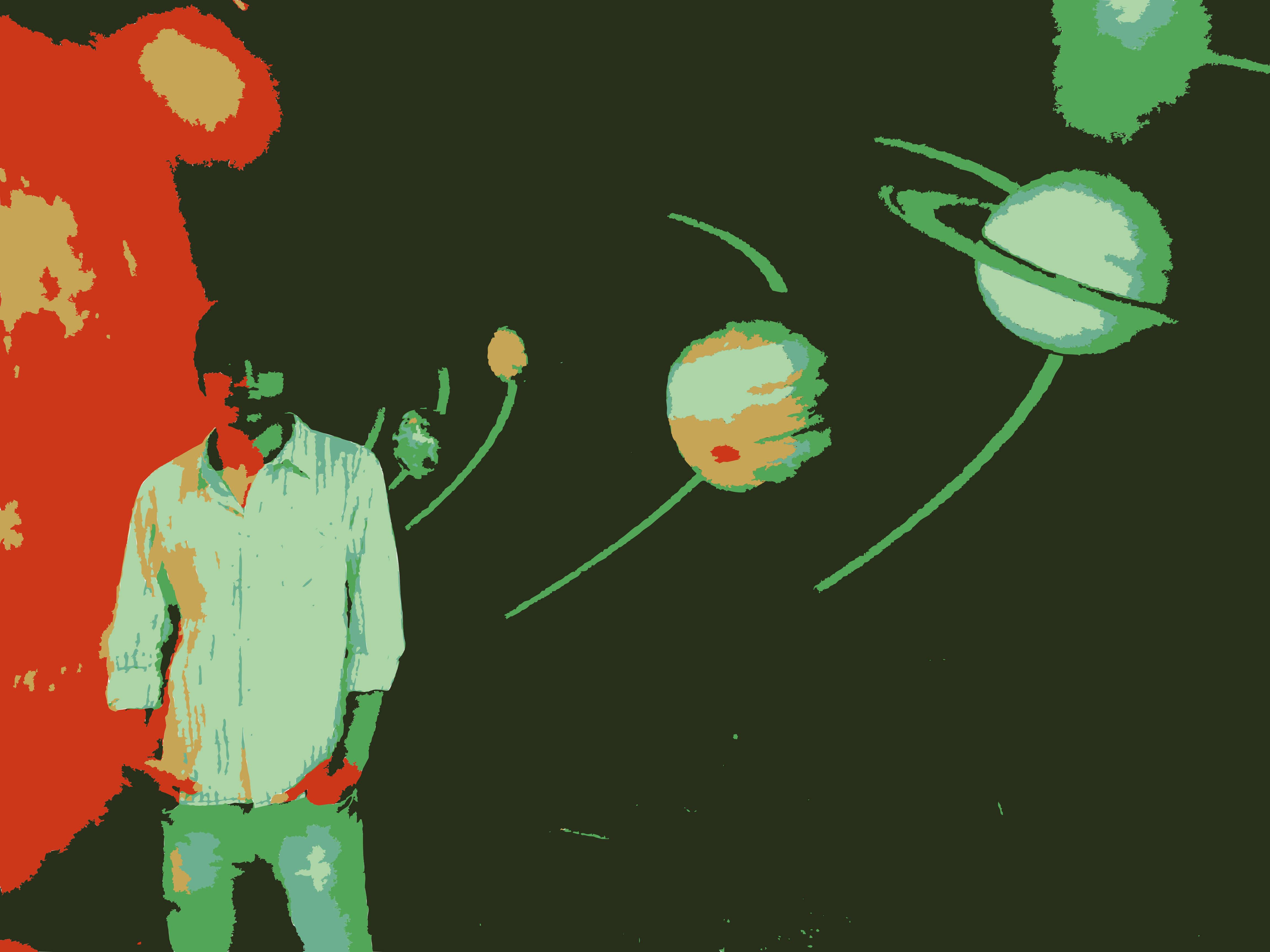 Tags: vectorized, artistic, colorful, man, shirt, jeans, white, blue, red, green, yellow, orange, planet, solar system