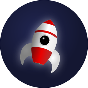 This features a round, blue rocket symbol with one round window on it. The rocket is white and red in color, giving it an appealing appearance. It appears to be the main focus of the image, as there are no other objects or distractions present. This simple yet captivating design could be used for various purposes such as a logo, decoration, or even as a symbol representing space exploration and adventure.