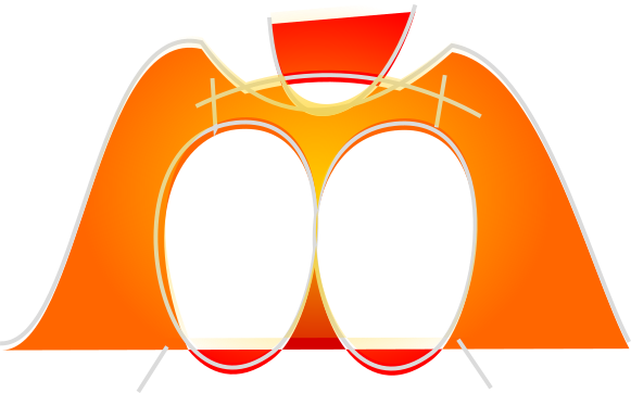 This features a unique and abstract design, consisting of two large orange shapes that resemble eyes. These eye-shaped designs are placed on top of each other, creating an interesting visual effect. The overall composition is quite intriguing and captivating, as the viewer's attention is drawn to the unusual arrangement of these shapes. This artistic piece could be a representation of creativity or an exploration of different design elements using inkscape functions.