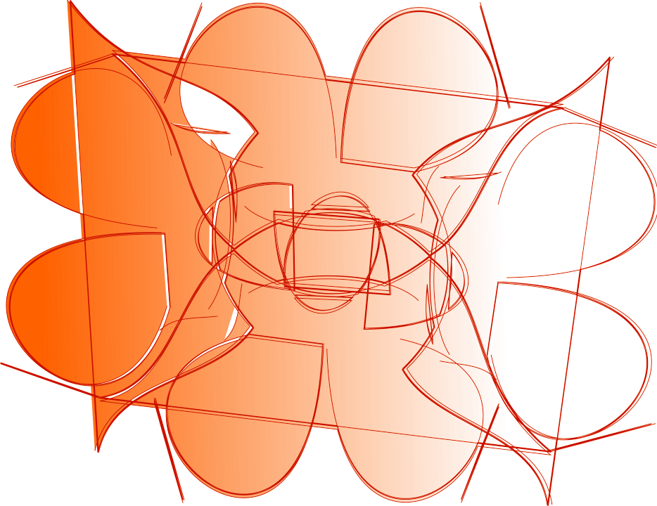 This is a colorful and abstract artwork, featuring an array of shapes and designs. These shapes are arranged in various patterns throughout the composition, creating a visually engaging piece of art. The colors used in this artwork are predominantly orange and red, giving it a warm and vibrant appearance. The combination of these colors with the intricate patterns creates a dynamic and captivating visual experience for viewers. Overall, the image showcases an interesting blend of shapes, colors, and design elements that come together to form a unique and eye-catching artwork.