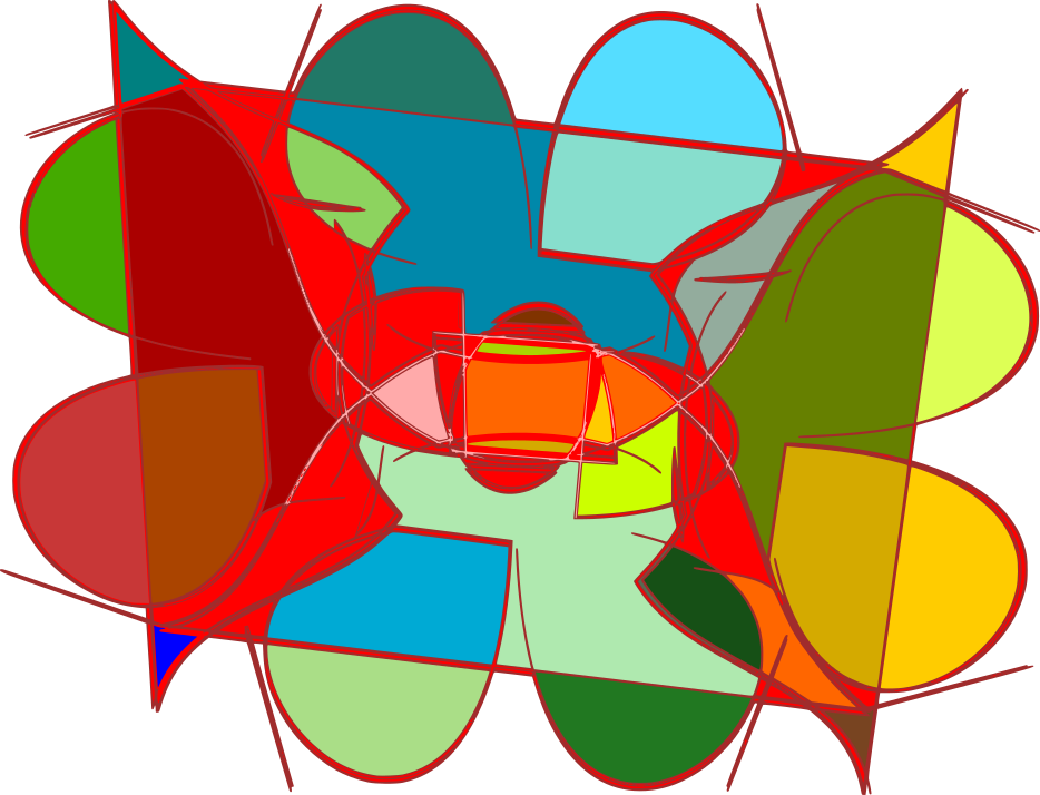 This is a colorful and abstract artwork, featuring various shapes and colors. These shapes are arranged in an intricate pattern that creates a visually appealing composition. The different colors used in the piece add depth and vibrancy to the overall design. This artwork could be interpreted as a representation of a kaleidoscope or a collage of geometric forms, showcasing the artist's creativity and skill in using various shapes and colors to create an engaging visual experience.