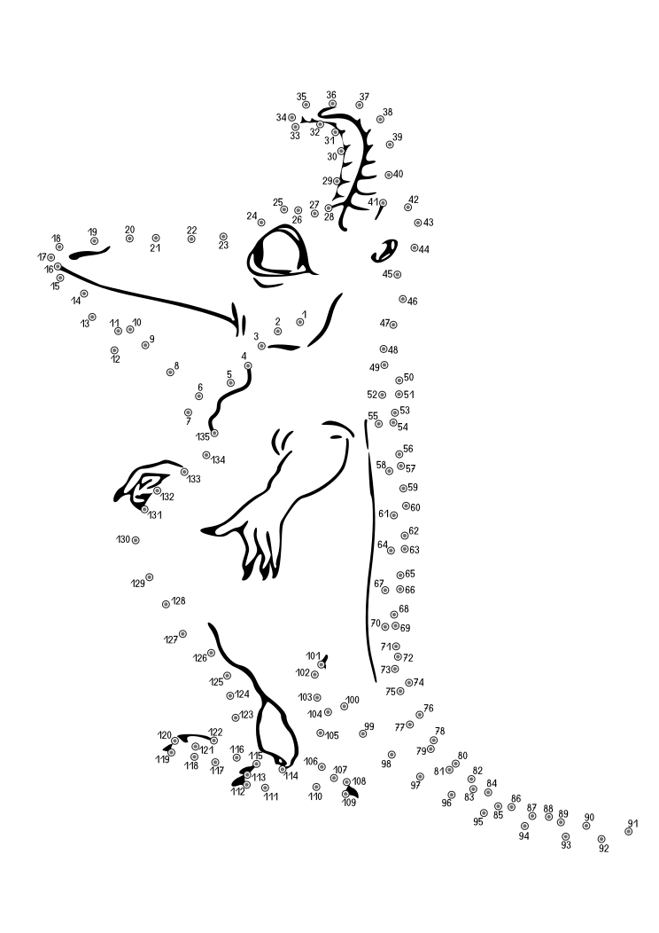 This features a unique drawing of an animal, possibly a dinosaur or a creature with multiple limbs. It is composed of numerous small black dots that are connected to form the shape and details of the animal. The dots are scattered throughout the picture, creating a sense of depth and complexity in the artwork. This intricate design showcases the artist's skill in using simple elements to create an interesting and visually engaging piece of art.
