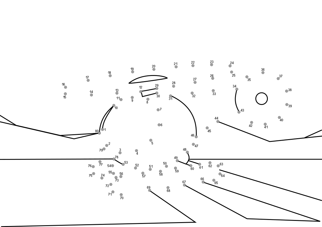 This is a black and white illustration of a connect the dot picture. When lines are drawn to connect the number dots, the picture transforms into an interesting scene featuring a helicopter flying through the sky. The helicopter appears to be in motion, with its blades spinning as it soars above the landscape. The image captures the essence of creativity and imagination by turning a simple drawing exercise into a dynamic representation of a helicopter in flight.