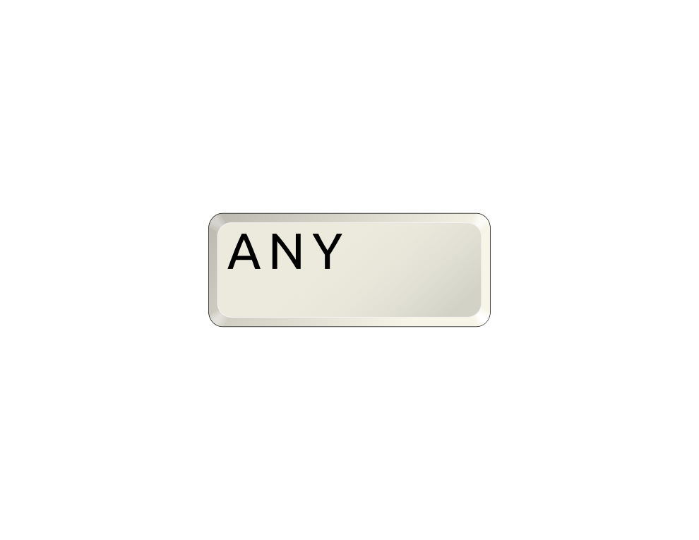 This features a close-up of an "any" button, which is a rectangular gray key with the word "any" written on it. This button appears to be part of a keyboard or computer input device, and its purpose is likely to allow users to select any option from a list or menu. The simplicity of the image highlights the functionality and design of this common household item.