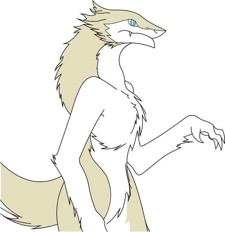 This features a cartoon-like drawing of an animal, possibly a wolf or a dog. It has long hair and is standing with its mouth open, giving it a fierce appearance. The animal's body occupies most of the frame, extending from the left side to almost the entire right side of the image. Its posture suggests that it might be ready for action or displaying dominance.