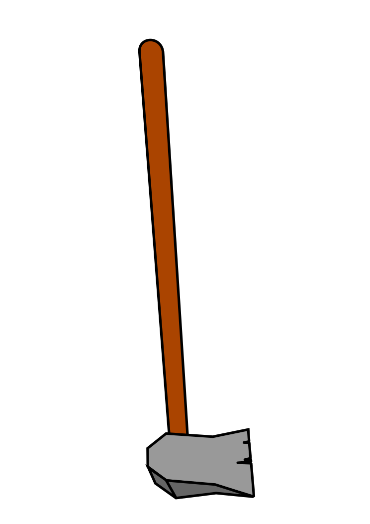 This features a cartoon drawing of an axe with a brown handle. The top part of the axe is grey, and it appears to be cracked. This unique design gives the impression that the axe has been used or worn down over time. The overall appearance of the axe suggests that it may have been used for various tasks, such as chopping wood or other materials.