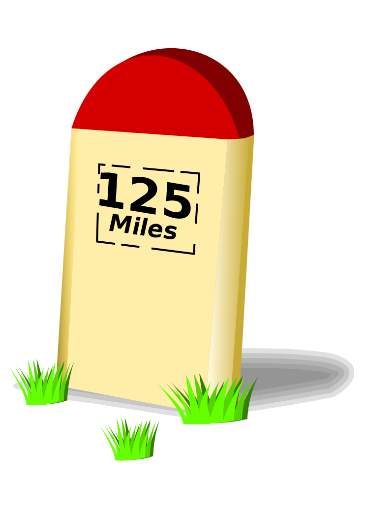 Tags: 125, 125 mile, 125 miles marker, 125 miles sign, 125 miles stone, 125 miles tombstone