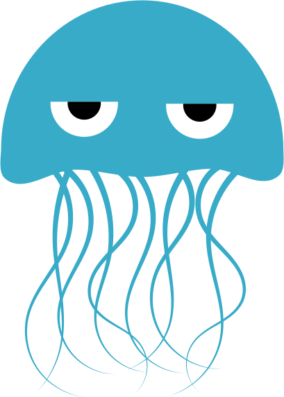 This features a blue and white cartoon illustration of a jellyfish with an angry expression. It has long tentacles that extend outwards, giving it a menacing appearance. The face of the jellyfish is particularly expressive, as if it's glaring or making a funny face at the viewer. This whimsical depiction of a sea creature adds a touch of humor and creativity to its presentation.