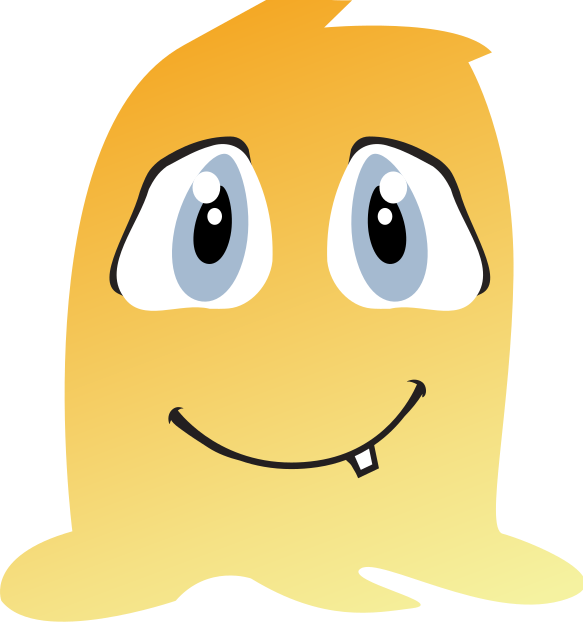 This features a yellow cartoon character with big eyes and a smile on its face. It appears to be a happy, friendly monster that is likely designed for children's entertainment or as part of a game. The character has a large nose and mouth, which adds to its playful appearance. The overall design of the character is simple yet engaging, making it an appealing visual element in various contexts.