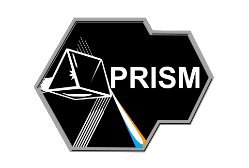 This features a black and white logo for the word "Prism." The logo is designed with a tent shape, and it has a rainbow line coming out of it. This unique design gives the impression that light is shining through the tent, creating an interesting visual effect. The word "PRISM" is written in white on top of the black background, making it stand out against the darker color. Overall, this logo represents a sense of creativity and innovation, as well as a connection to the concept of light and its refractive properties.