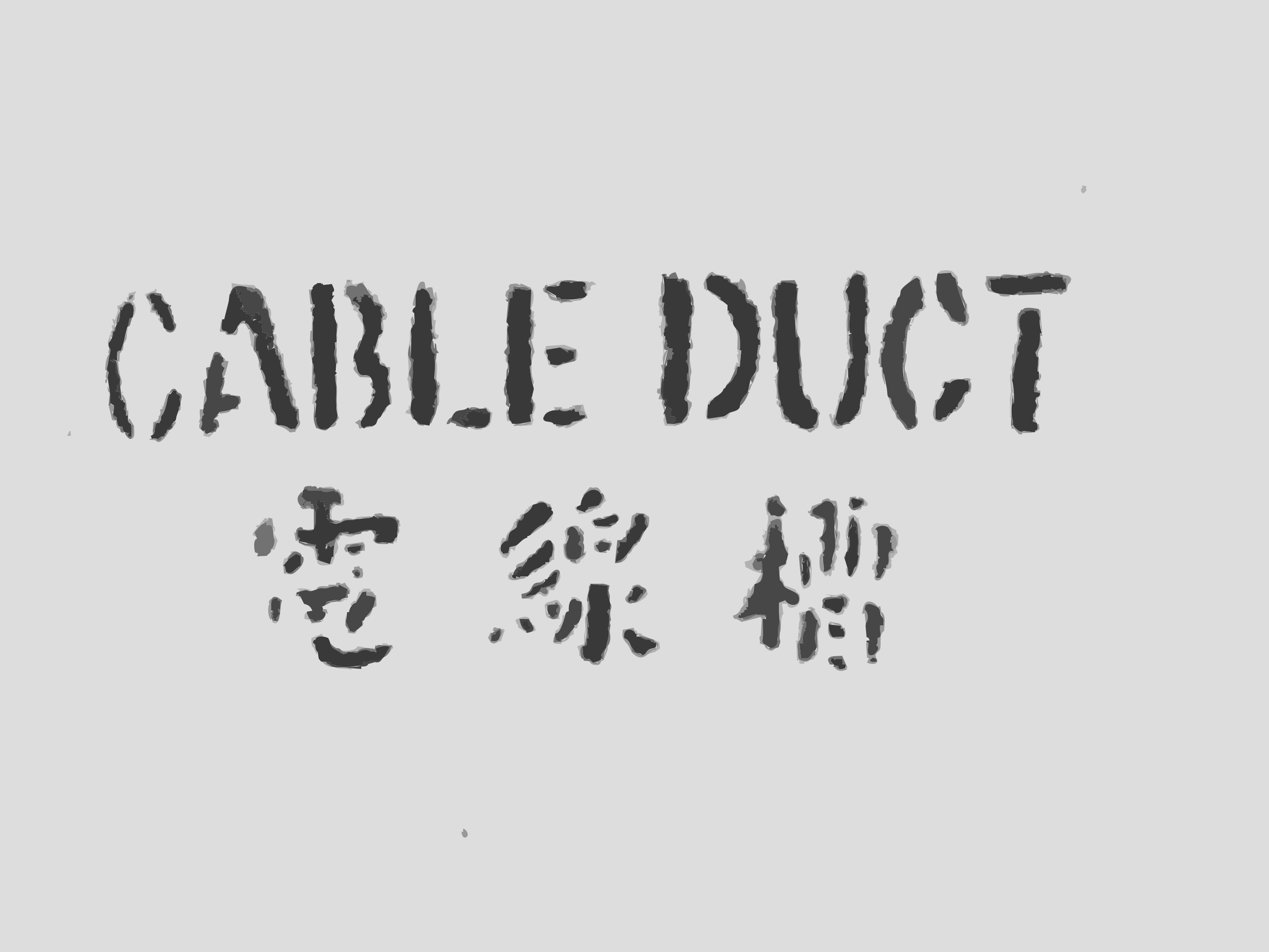 This features a black and white sign with Asian characters written on it. The text is in a foreign language, possibly Japanese or Chinese. The sign appears to be related to cable ducts, as the term "cable duct" is written across the top of the sign. The sign seems to be an important piece of information for those who understand the language used.