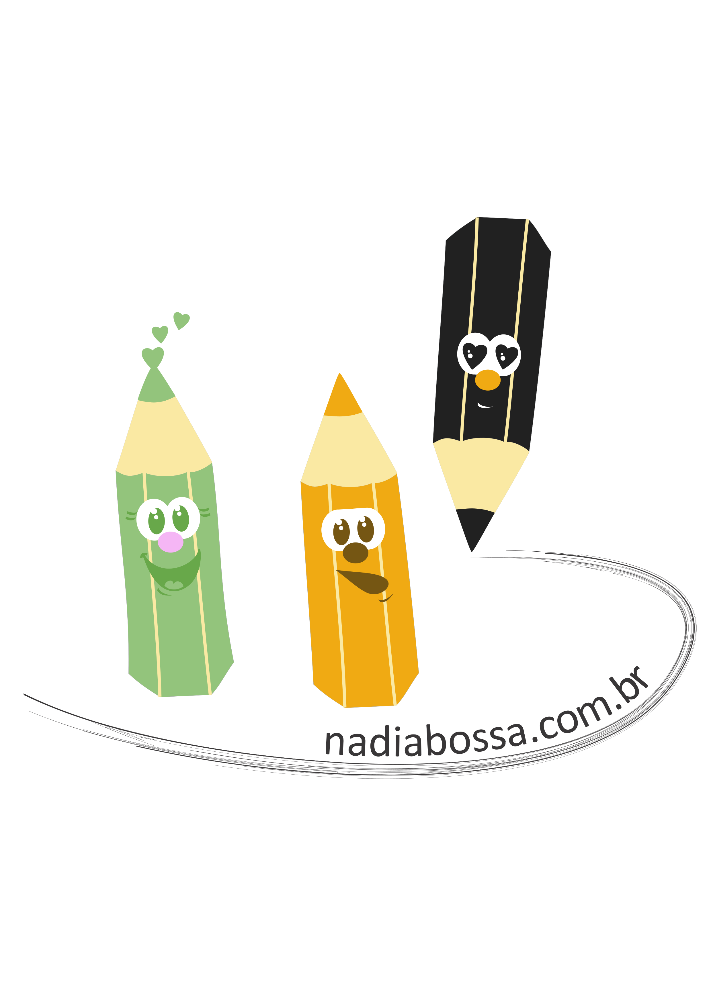 This features three colorful pencils with different facial expressions. They are arranged in a row, each one standing out due to its unique appearance and expression. One of the pencils is green, another yellow, and the third one orange. Each pencil has a distinctive face drawn on it, adding character and charm to the scene. The arrangement of these three pencils creates an eye-catching display that showcases their individuality and playfulness.