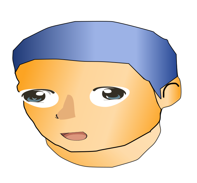 This features a cartoon-like drawing of a man with blue eyes and an orange head. He appears to be smiling, giving the impression that he is happy or content. The drawing has a unique style, making it stand out as a creative piece of artwork. The man's facial expression and colorful appearance give the image a lively and engaging quality.