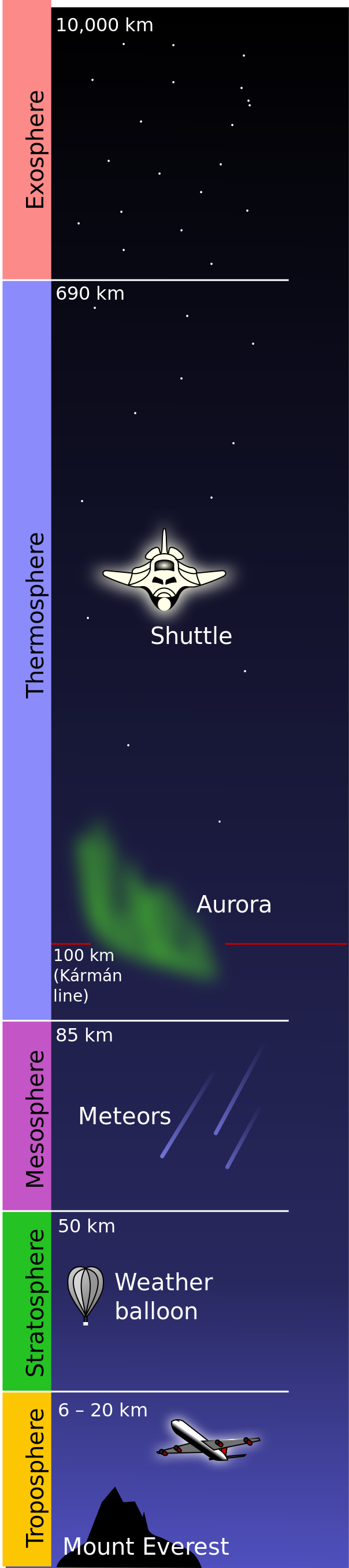 This is a graphic representation of the Earth's atmosphere, showing various layers and their respective altitudes. The main focus is on the ozone layer, which is located at an altitude of around 20-30 kilometers above sea level. This layer plays a crucial role in protecting the planet from harmful ultraviolet (UV) radiation coming from the sun. The graphic also includes several other layers within the Earth's atmosphere, such as the stratosphere and troposphere. The stratosphere is situated above the ozone layer and extends up to around 50 kilometers in altitude. It contains a significant amount of oxygen and plays an essential role in maintaining the Earth's climate. On the other hand, the troposphere is the lowest layer of the atmosphere, extending from the surface of the Earth up to about 8-16 kilometers. This layer is responsible for most of the weather phenomena we experience on a daily basis, such as temperature changes and precipitation.