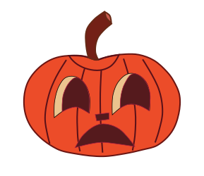 This features a cartoon pumpkin with an angry face, giving it the appearance of having a frowning expression. The pumpkin is depicted in orange and brown colors, making it look like a real pumpkin. It has two eyes, one on each side, and a mouth that appears to be frowning. This creative representation of a pumpkin adds a playful touch to the Halloween season.