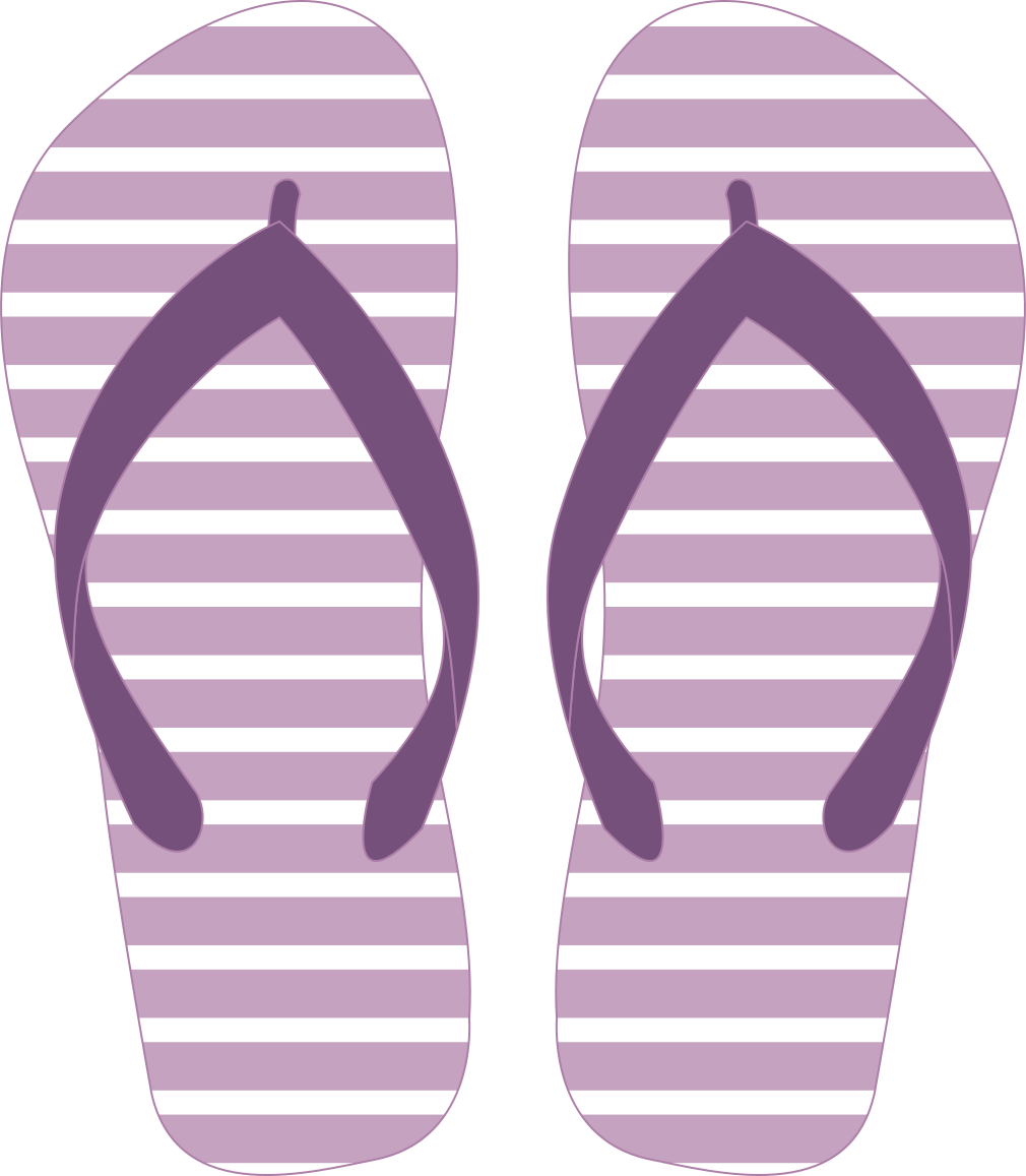 This features a pair of purple flip flops with a light purple and white striped pattern. They are placed on top of each other, creating an interesting visual effect. The strap on the flip flops is dark purple, adding contrast to the overall design. This illustration captures the essence of a classic beach accessory in a unique and eye-catching manner.