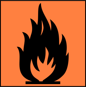 This features a large, orange flame with black edges. It is prominently displayed in the center of the picture, taking up most of the frame. The flame appears to be burning brightly and is likely used as an emblem or symbol for various purposes.