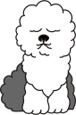 This features a cute cartoon dog with its eyes closed, giving the impression of being asleep. It has a fluffy white coat and is sitting on the ground in a relaxed position. The dog's facial expression appears to be sleepy and content, making it an endearing scene.