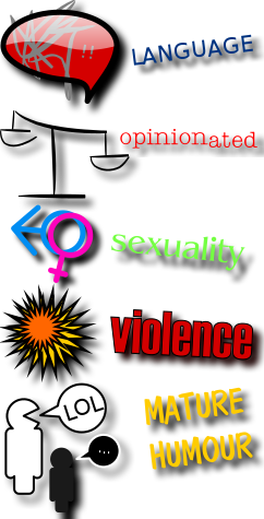 This features a collection of various words and phrases, including "language," "opinionated," "sexuality," "violence," "nature," "maturity," and "humour." These words are arranged in an organized manner, with some placed above others. Above the words, there is a scale or balance, which adds to the visual appeal of the image. The combination of these elements creates a visually interesting and thought-provoking display.