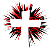 This features a large, red and black cross with a white background. The cross is prominently displayed in the center of the image, surrounded by a blurred background that gives it an artistic appearance. The contrast between the sharpness of the cross and the softness of the background creates a visually striking composition. This design could be used for various purposes such as religious symbols or decorative elements in artwork or other visual media.
