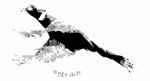This is a black and white drawing of a person doing a cartwheel. The person appears to be in mid-air, showcasing their skill and balance. The drawing captures the essence of the action, with the person's body positioned at an angle, giving the impression that they are flying through the air. The image is reminiscent of a vintage photograph or a classic illustration, evoking a sense of nostalgia and artistic expression.