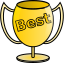 This features a golden trophy cup with the words "Best" written on it. The trophy is placed in front of a white background, making it stand out prominently. The design and color of the trophy give it an elegant appearance, suitable for awarding achievements or recognizing exceptional performance.