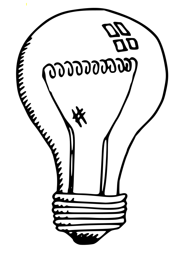 This features a black and white drawing of an incandescent light bulb. It is a simple, yet elegant design that captures the essence of the classic light bulb shape. The drawing appears to be hand-drawn, giving it a unique, artistic touch. The light bulb's shape is accentuated by its contrasting colors and the absence of any additional decorative elements. Overall, this image showcases an iconic symbol in a minimalist and creative manner.