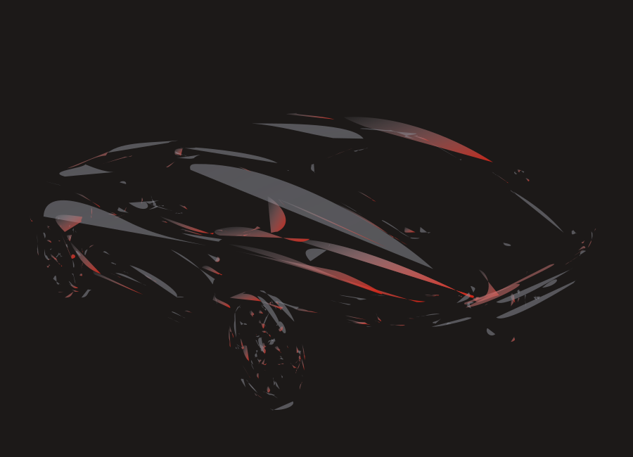 This features a sleek, modern sport car with a red and black color scheme. It is parked in a dark setting, possibly at night or during the evening hours. The car's design appears to be futuristic, giving it an aerodynamic look that makes it stand out from other vehicles on the road. The car's shape suggests that it may have been designed with speed and performance in mind, making it a popular choice among automotive enthusiasts.