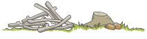 This features a pile of dead branches and tree trunks on the ground. There are several large bones scattered around, adding to the overall scene. A few rocks can also be seen in the area, further enhancing the natural setting. The combination of these elements creates an interesting and somewhat eerie atmosphere.