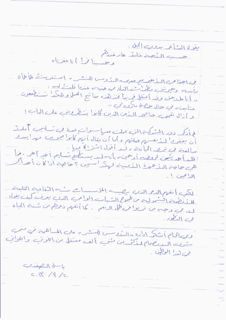 Tags: bassel, basselkhartibil, basselsafadi, freebassel, arabic, foreign language, handwritten, letter, letter arabic