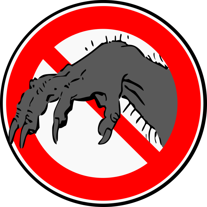 This features a red circle with a no monster sign on it. Inside the circle, there is an illustration of a hand belonging to a monster. This sign serves as a warning for people not to touch or interact with the monster's hand. The design of the sign is simple yet effective in conveying its message.