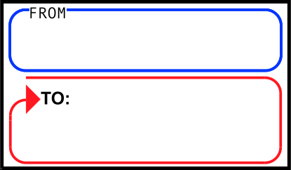 This features a mail label with a rectangular shape. On the label, there is a blue box labeled "from" and a red box labeled "to." These boxes are likely used for addressing letters or packages to be sent through the postal service. The design of the label suggests that it may be used for sending greeting cards or other types of mail.