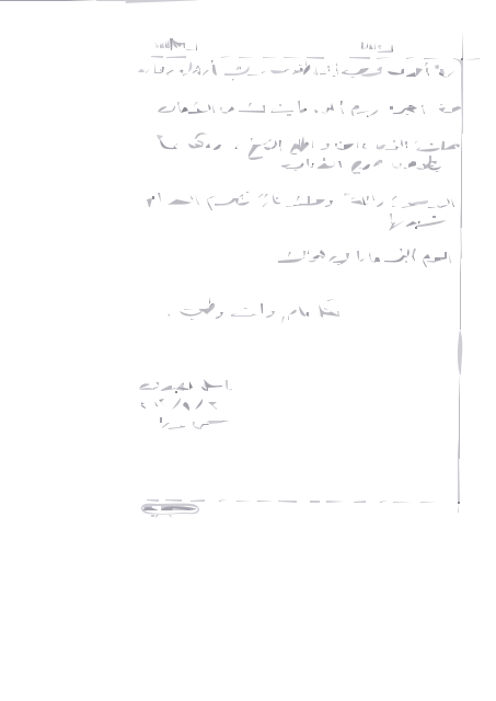 This features a handwritten letter written in Arabic, addressed to Noura. It appears to be a birthday message for her, as the sender wishes her happiness on her special day. The letter is written on a piece of paper and has been signed by Bassel. The writing style suggests that it was composed with care and attention, possibly expressing deep emotions or conveying heartfelt sentiments.