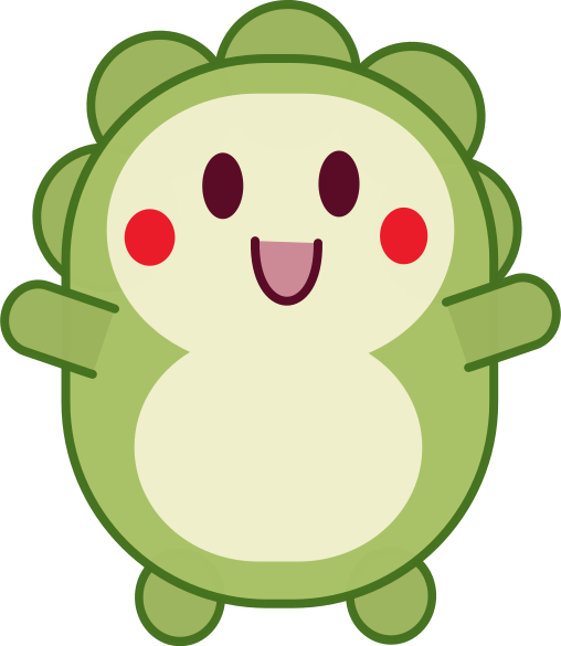 This features a cartoon-like green animal with a very round body and rosy red cheeks. It has a smiling face, giving it an adorable appearance. The animal is posed in the center of the frame, occupying most of the space within the image. Its cheerful expression adds to its overall cuteness, making it an appealing and delightful visual for viewers.